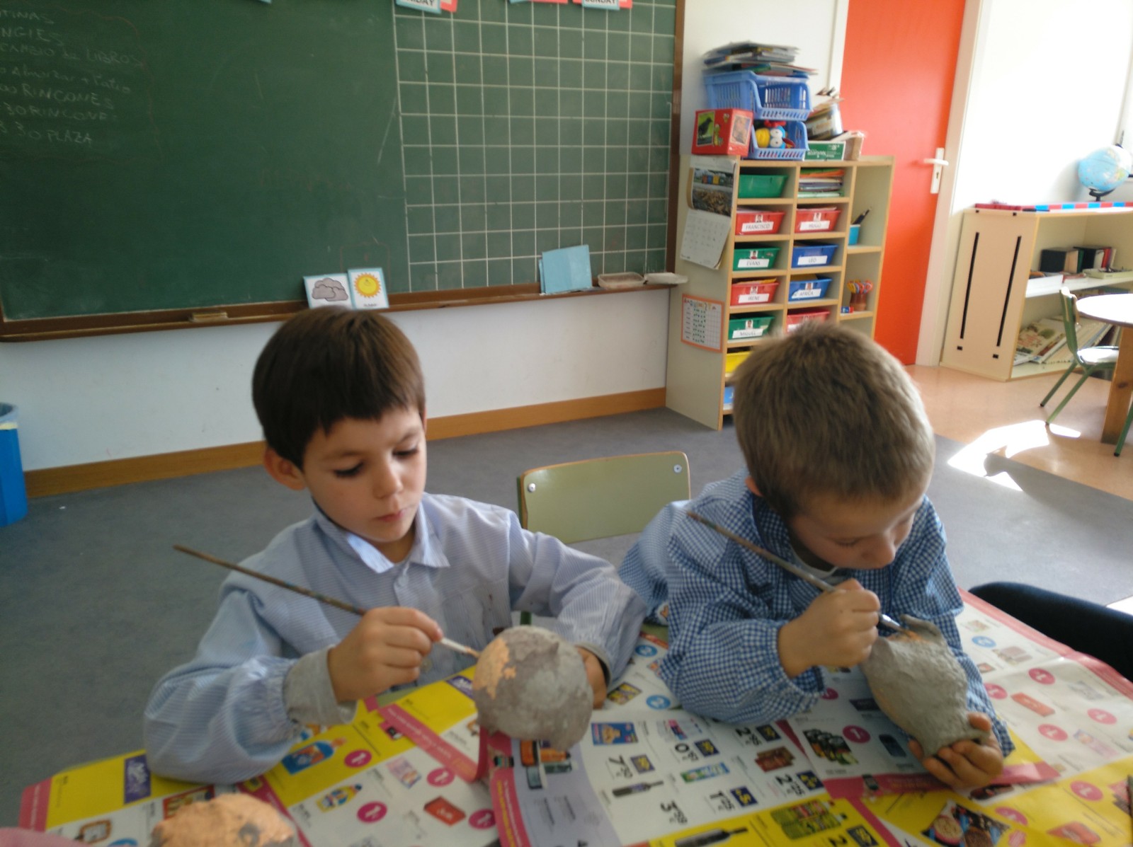 4. Cuando la masa se seca se pinta el color base y los detalles, y se deja secar nuevamente.