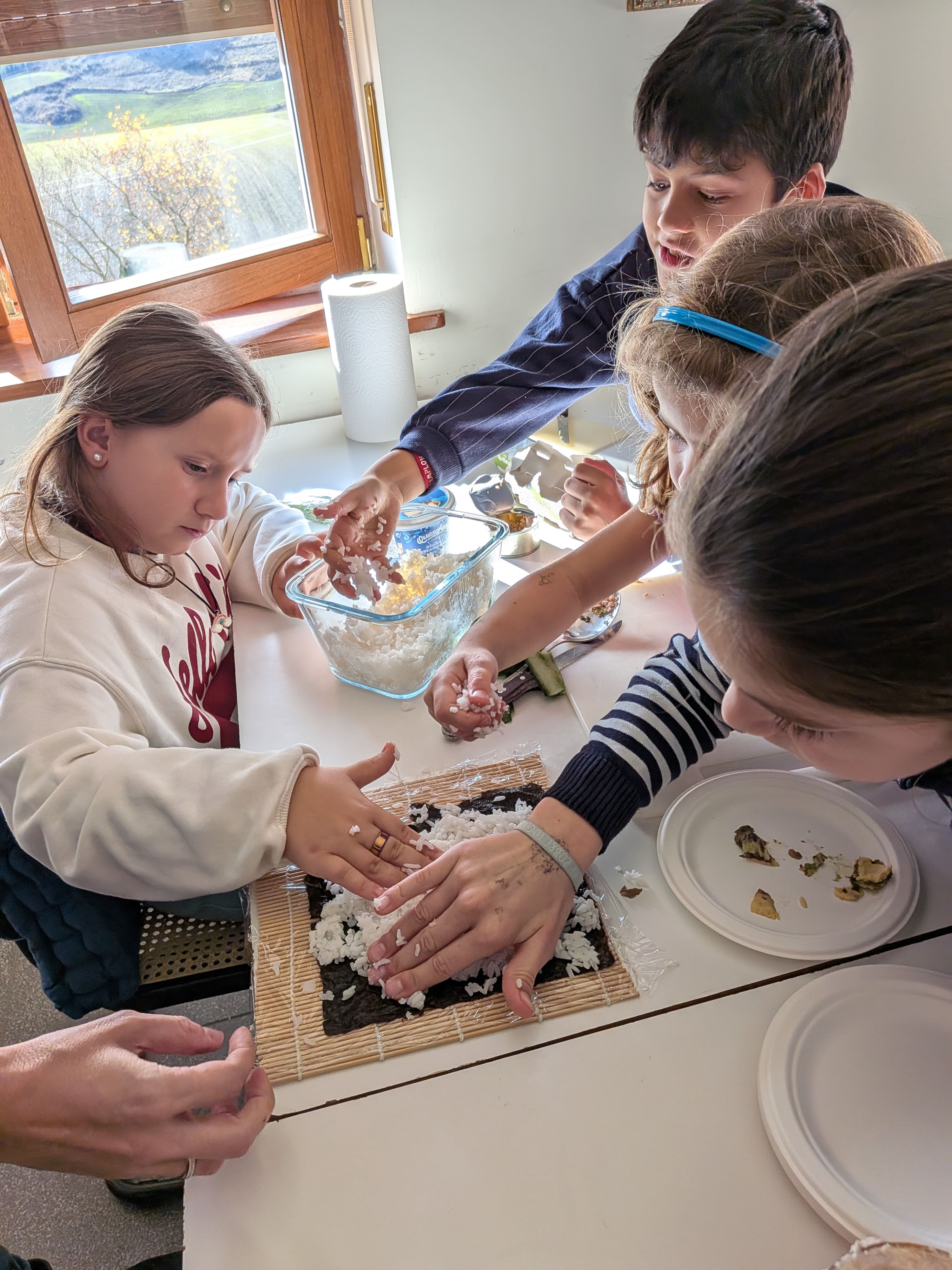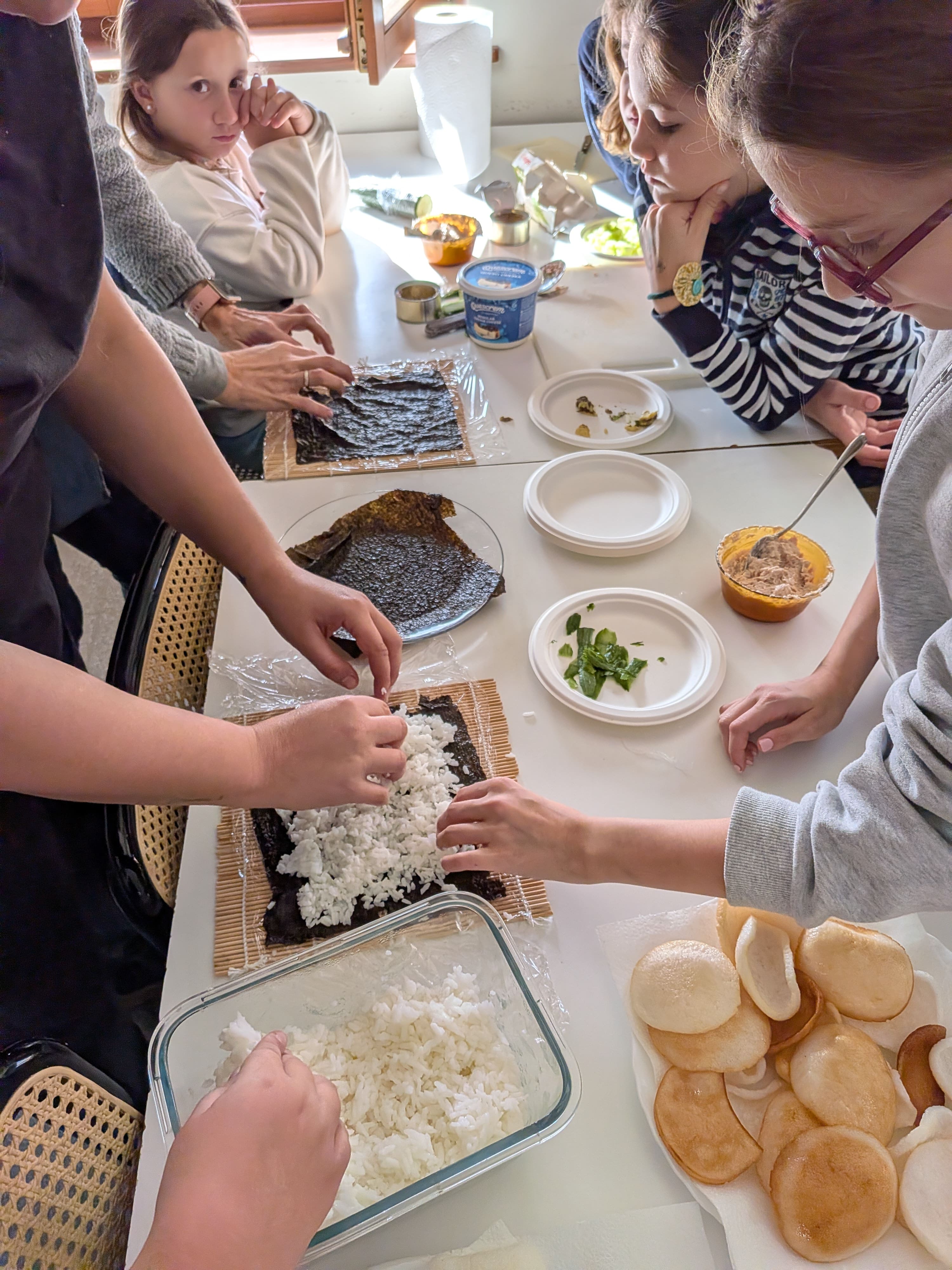 Taller de Sushi: Los alumnos y alumnas se convirtieron en pequeños chefs desarrollando habilidades de motricidad fina, seguimiento de instrucciones y trabajo en equipo al preparar sus propias piezas.