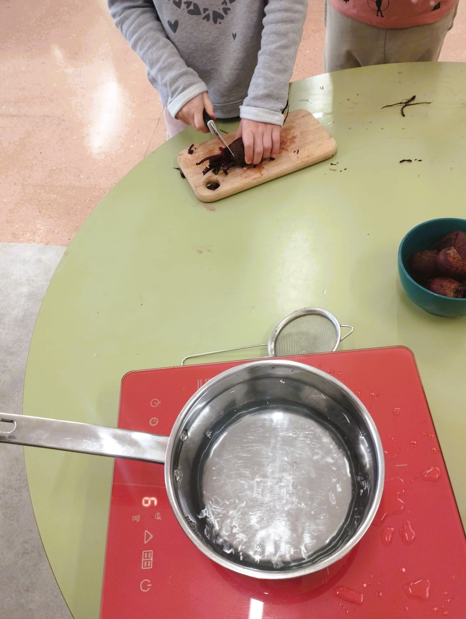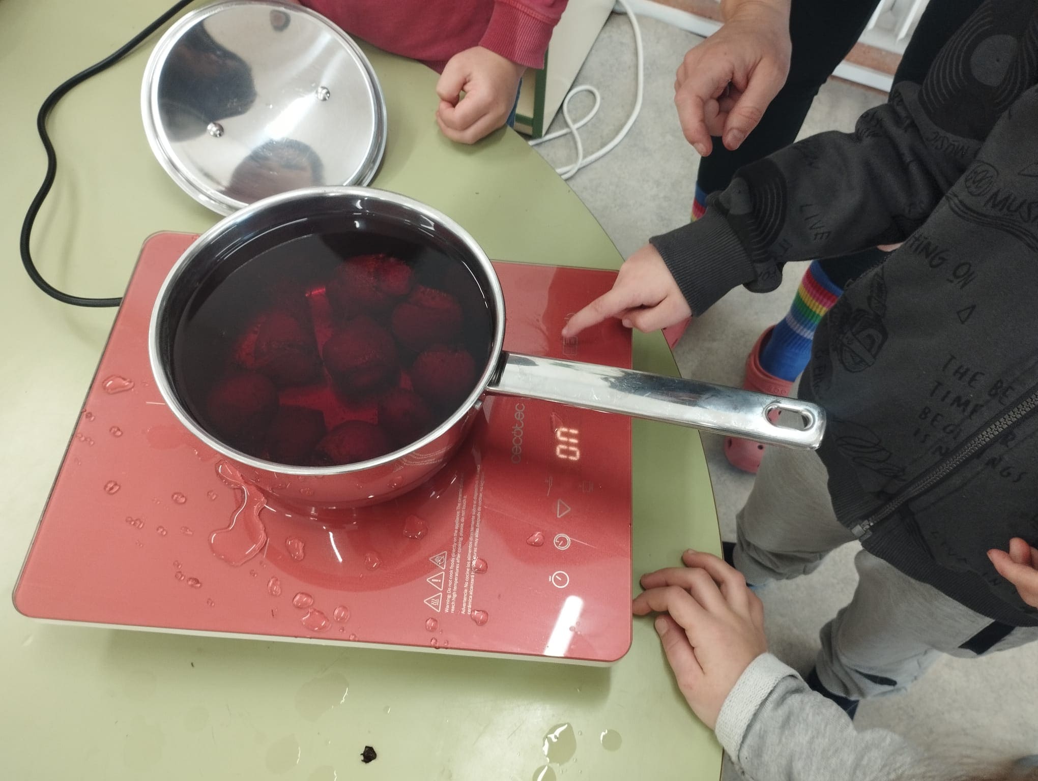 Seguidamente, aprendimos cómo la temperatura transforma la textura y el sabor. También recordamos que son necesarios 100ºC para que hierva el agua.