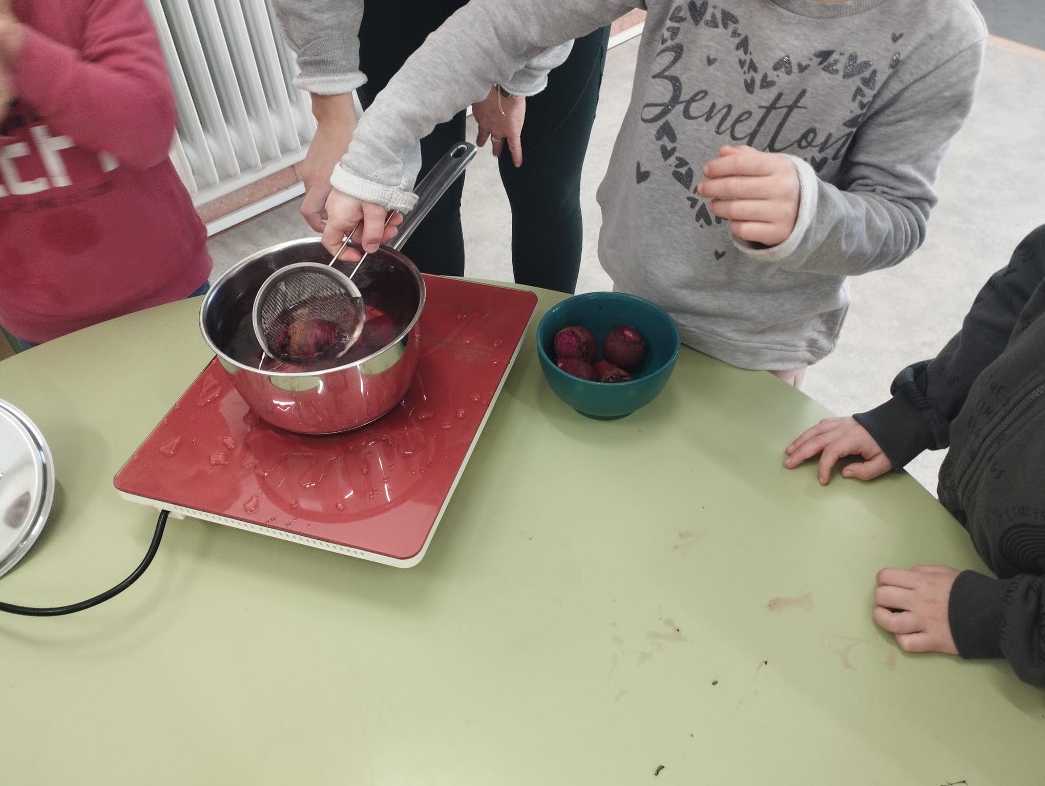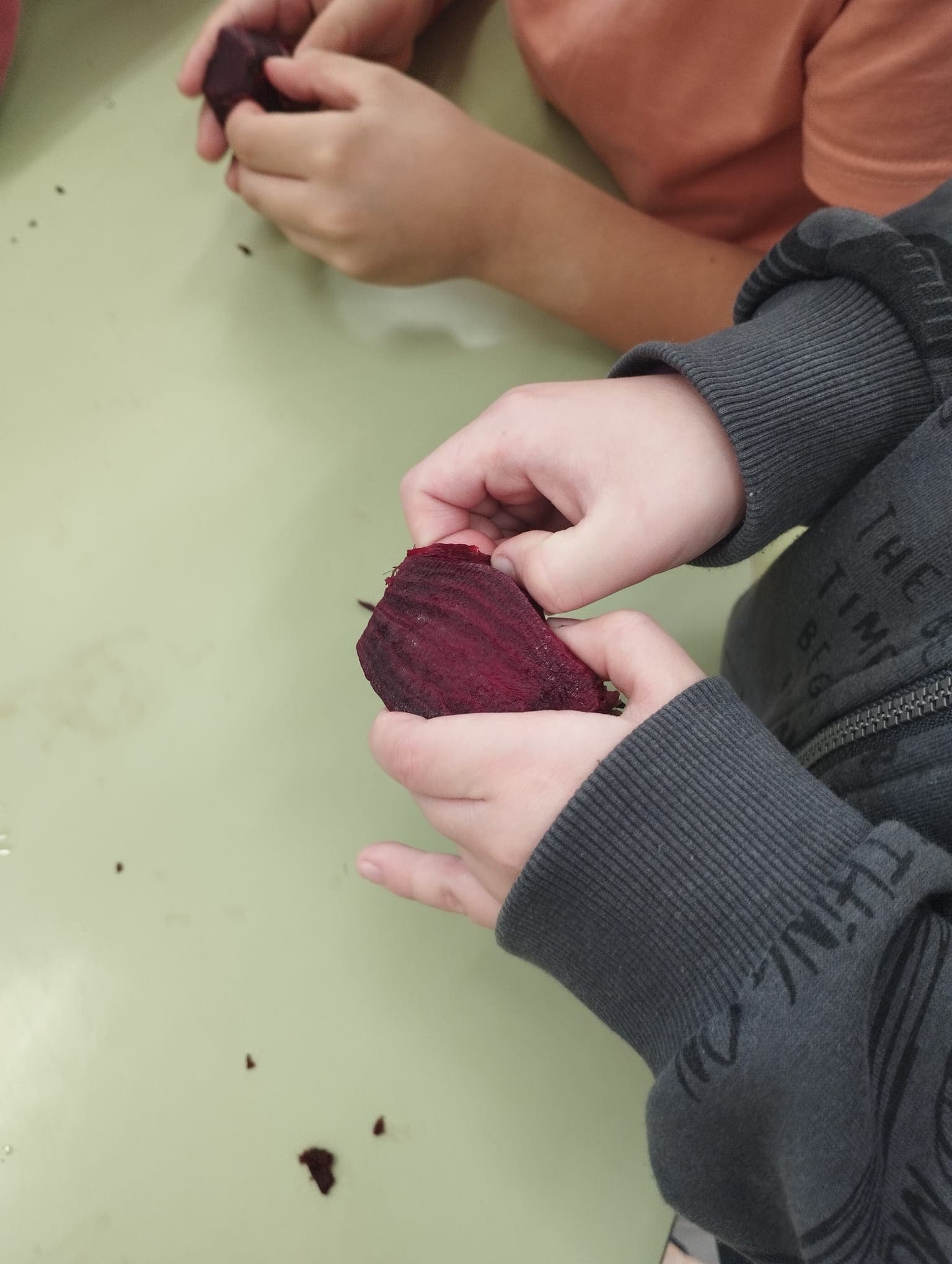 Finalmente, cortamos las remolachas en rodajas y pudimos disfrutar de su característico sabor dulce en un almuerzo saludable y compartido.